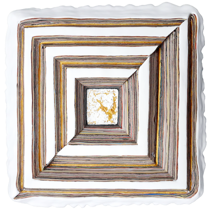 Strates labyrinthiques : fouilles picturales et empreintes du temps Cette série de diptyques s’élabore dans un dialogue entre apparition et soustraction, entre la matière révélée et son empreinte inversée. Chaque tableau naît d’un patient processus d’accumulation de couches picturales, un dépôt de pigments successifs qui, tel un sol en formation, enregistre le passage du temps. Puis vient l’acte de creusement : dans l’un des panneaux, la peinture est excavée, laissant émerger un réseau sinueux de sillons, un labyrinthe qui se fraie un chemin à travers les strates colorées. Le second panneau, en miroir, conserve la mémoire de cette excavation : il en est le négatif, l’empreinte résiduelle, le contre-espace du premier. Ces compositions labyrinthiques convoquent à la fois le registre du géologique et du symbolique. Comme les strates d’une falaise ou les cernes d’un tronc d’arbre, elles cristallisent le temps dans la matière. Chaque couche soustraite dévoile ce qui, autrement, serait resté invisible, un feuilletage où l’histoire se lit en creux. Cette archéologie picturale fait écho aux processus naturels d’érosion et de formation, où le passage des âges se grave dans la pierre comme dans la mémoire des pigments. Mais le labyrinthe, au-delà de sa matérialité, s’offre aussi comme un espace mental, une métaphore du cheminement intérieur. À la fois piège et quête, il figure l’errance et la révélation. Dans ces œuvres, il se fait trace du geste, cartographie du temps enfoui, invitation à une déambulation entre l’accumulation et l’effacement, la présence et l’absence, l’apparition et le secret. Le creusement devient ainsi un acte de dévoilement, où chaque enlèvement de matière révèle une histoire enfouie. Ces diptyques ne sont pas seulement des surfaces peintes, mais des territoires explorés, des paysages intérieurs où la temporalité s’inscrit dans la chair même de la couleur. Link your text to anything, or set